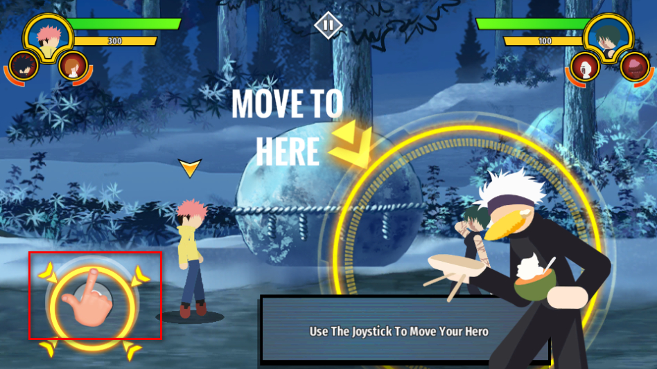 2、在对局中通过左侧的摇杆控制英雄移动,按照指引移动到目标位置。