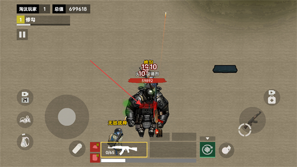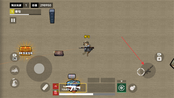 3、通过移动右下角的开火键,控制枪械射击方向攻击敌人。