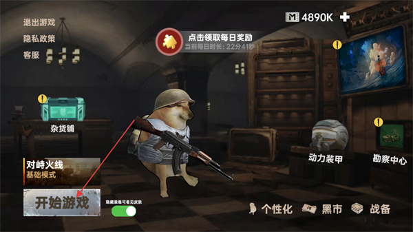 1、打开游戏主页界面,点击开始游戏按钮进入到火线战场。