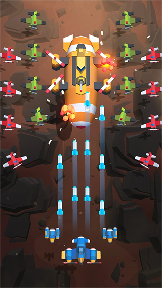 弹幕设计兼具密度与规律性,敌方子弹虽密集但有迹可循,搭配不同战机的属性优势,既能体验躲避弹幕的紧张感,又能通过合理选择战机发挥攻坚优势。
