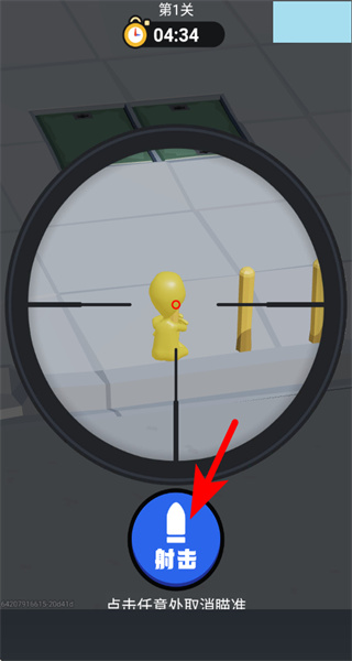 3、在狙击视角下点击射击按钮,可攻击瞄准的黄色外星人,命中后消灭该目标。