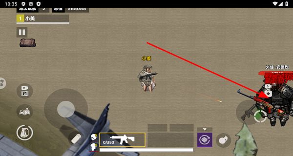 2、通过摇杆移动控制角色在战场中行动,探索不同区域,寻找资源和敌人,推进游戏进程。