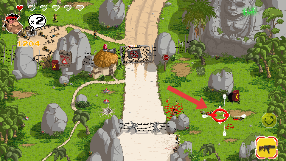 1、战场探索与攻击方式:在丛林、敌占城市、敌军基地等场景中探索推进,战斗时可切换枪械进行远程射击,也能使用手榴弹等投掷物攻击集群敌人。