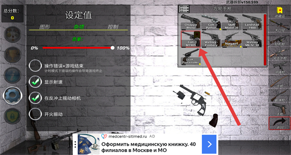1、在武器选择界面,点击右侧“左轮手枪”分类下的目标枪械,选定该武器。