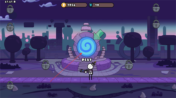 1、打开单枪匹马游戏主页,点击带有PLAY字样的魔法门开始闯关。