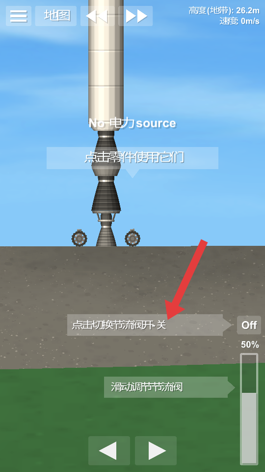 3、火箭发射前,点击点击切换节流阀开关,开启节流阀,为火箭的发射提供了原来的动力控制。