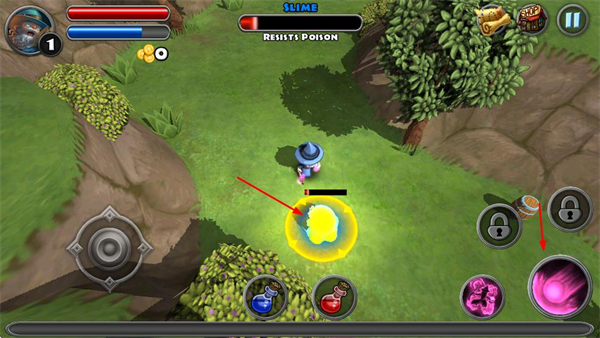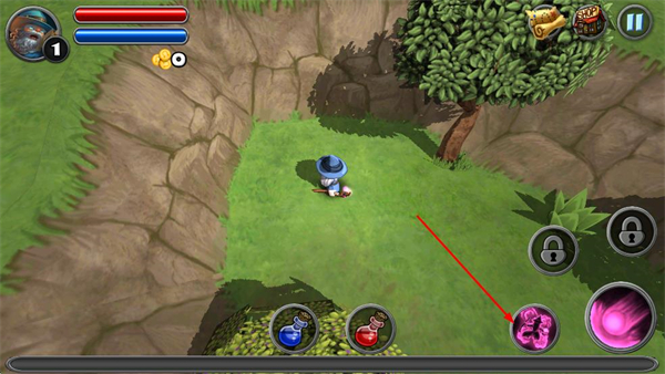 3、进入游戏场景后,点击技能按钮,准备对遇到的敌人释放对应技能。