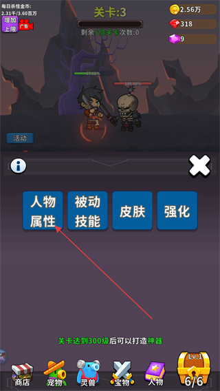 3、点击下方列表的人物按钮,点击人物属性选项可以查看当前人物情况。