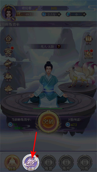 3、点击灵宠按钮,可进入灵宠界面,灵宠能辅助战斗和修炼,提升角色的整体战力。