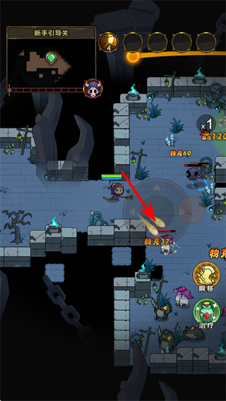 滑动屏幕即可操控角色移动,角色自动发起攻击,无需复杂操作,击败怪物获取经验升级后选择技能,激活觉醒技后点击释放,治疗功能一键触发。