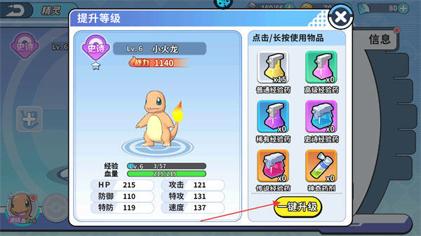 2、每击败一只野生精灵都会获得少量经验,当经验条满之后就可以升级了。