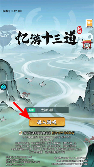 1、进入游戏后,点击箭头指引的按钮,这是进入游戏主界面的关键操作,点击后即可进入角色养成的核心场景。