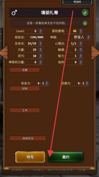 3、在角色界面,查看角色如壞骝礼骞的各项属性,包括生命值、力量等,确认后点击邀约,将角色纳入队伍,为探险储备力量。