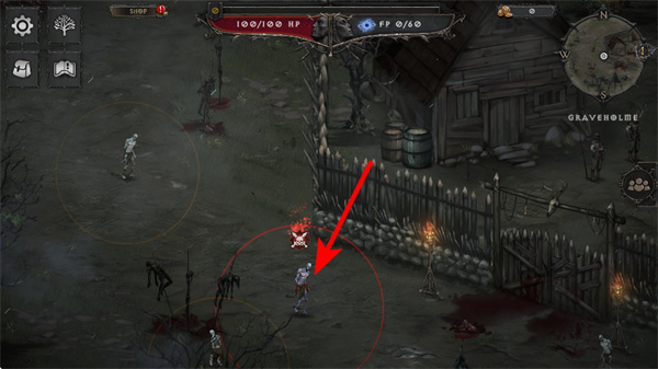 4、遇到敌人如亡灵类怪物时,操控角色靠近目标触发战斗,借助初始技能击败敌人获取资源,同时留意自身的HP状态,避免战斗血量过低。