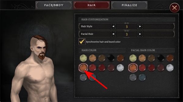2、进入角色自定义界面后,在HAIR标签页选择喜欢的发型与发色如棕红色,完成角色外观的个性化设置,这步能让角色更契合自身偏好。