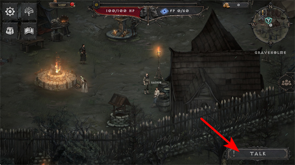 3、进入初始场景后,找到界面的TALK按钮与NPC互动,通过对话获取任务指引或剧情信息,这是推进游戏流程、熟悉世界观的关键方式。