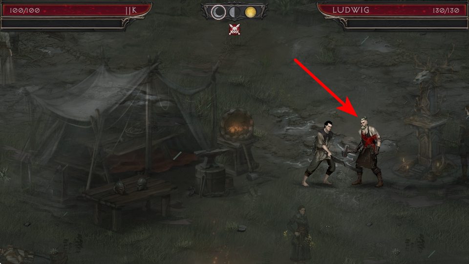 1、触发战斗后,目标为红色箭头指向的LUDWIG,需通过后续操作对其发起攻击,推进战斗流程。