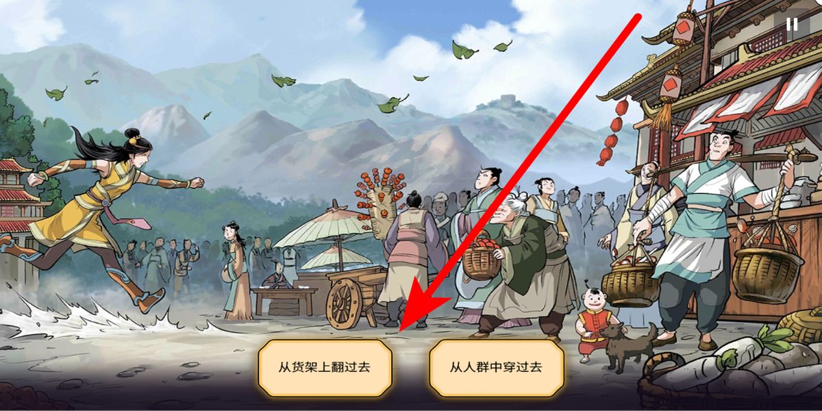 3、主线剧情推进过程中,会出现不同的对话选项,如从货架上翻过去从人群中穿过去等,选择不同的选项,会导向不同的剧情发展,增加游戏的趣味性。