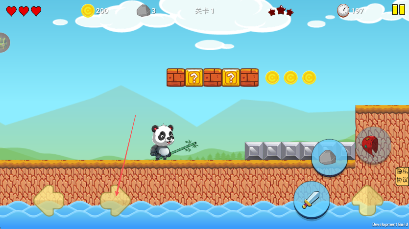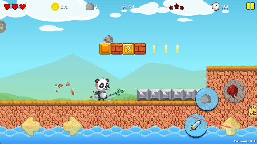 3、点击跳跃按钮,熊猫跳起用竹子触碰砖块,获取金币等物品。