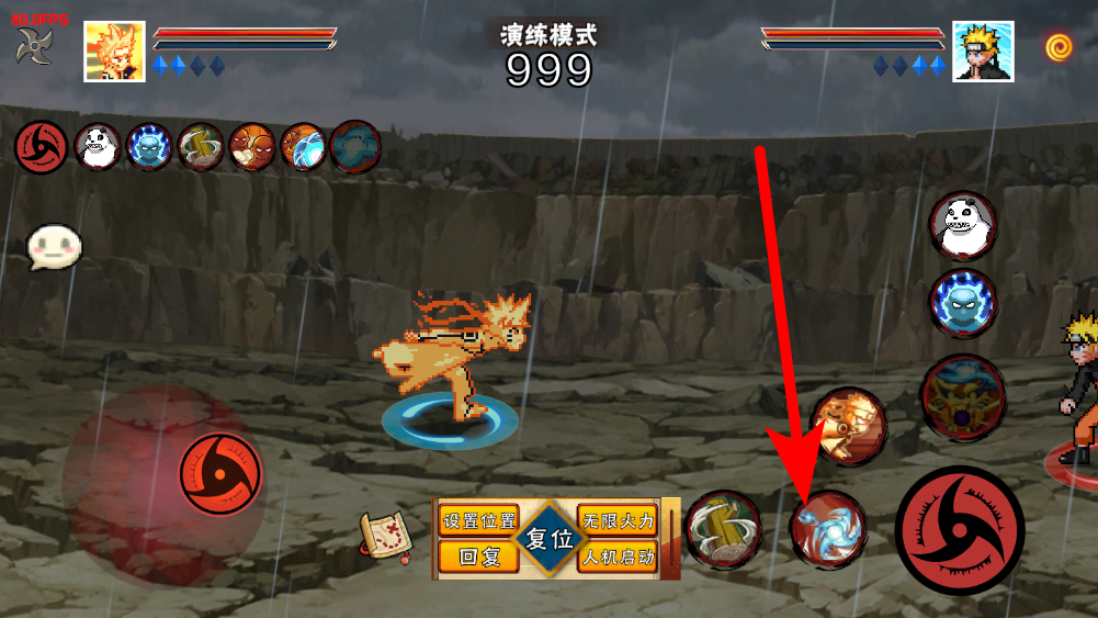 3、进入战斗后,屏幕下方有各类技能按键,玩家可点击对应的技能按键,释放忍者的专属忍术,像部分角色能释放具有强大冲击力的螺旋丸类技能。