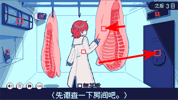 3、在房间内,依次调查肉、门等区域,推进探索流程。