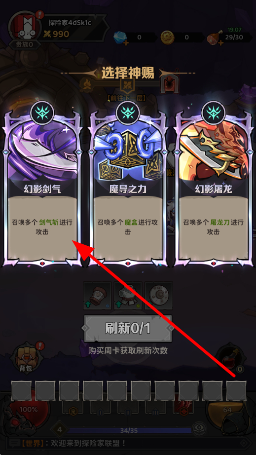 3、然后在选择神赐的界面,可从幻影剑气、魔导之力等不同技能中挑选合适的神赐技能,借助技能增强自身战力,更高效地战斗。