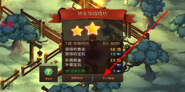 4、通过地牢关卡获得奖励,获取黄金、宝石等资源,解锁新的游戏内容,继续地牢冒险之旅。