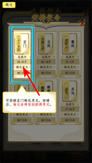 2、进入安排使命界面后,选择对应的势力,这是分配资源产出任务的基础操作,选定后该势力会持续产出对应的资源,助力势力成长。