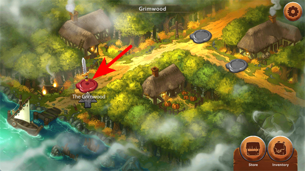 1、点击游戏主界面中的红色印章区域,进入Grimwood对应的游戏关卡。