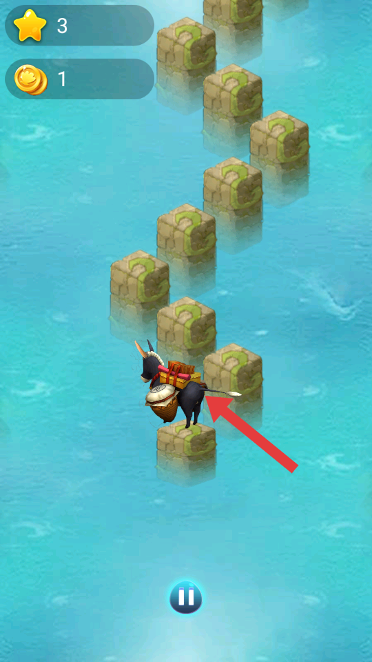 1、进入卡通场景后,先熟悉驴子的移动操作,通过屏幕下方的方向键控制驴子在石墩上行走,重点练习短按方向键微调位置。