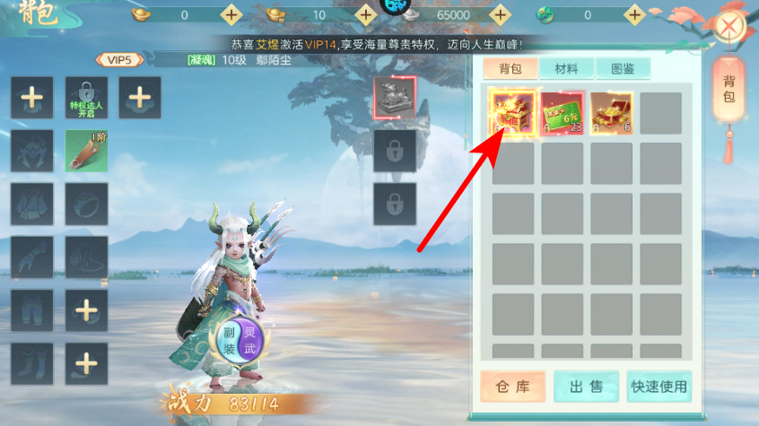 4、在背包界面,点击获得的宝物道具,可使用或查看其详情,合理利用背包内的资源,为角色战斗提供支持。