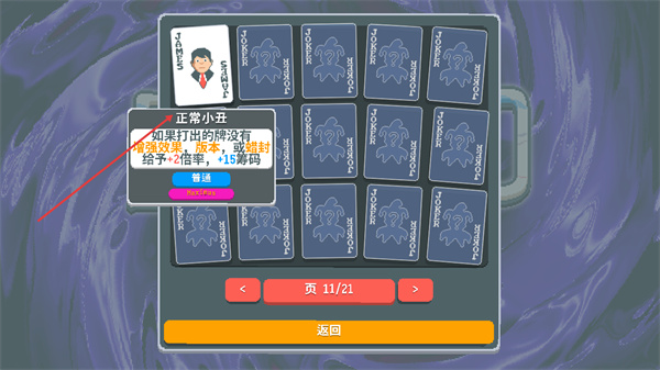 2、在游戏卡牌界面查看正常小丑的效果,选择普通或Maximus模式配置该卡牌的使用规则。