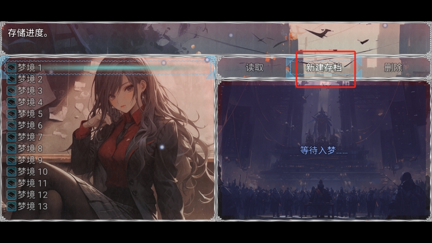1、第一次游玩该游戏的玩家们需要新建一个存档,新建存档后可以直接进入梦境;
