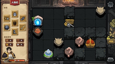 1、探索随机地牢:在自动生成的迷宫中进行探索,每前进一步都可能遭遇战斗、宝藏或随机事件,谨慎选择前进路线以最大化冒险收益。