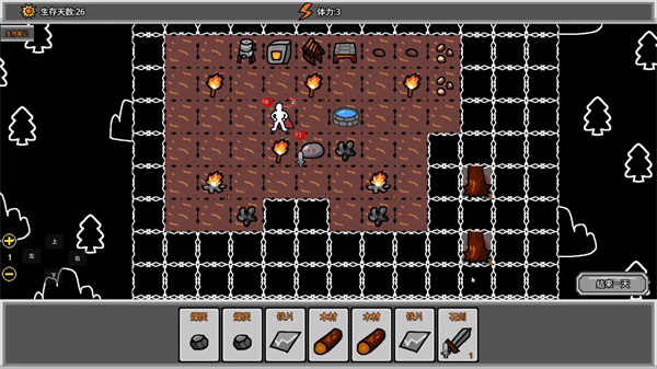 最终在什么都没有的黑暗世界中一步步的生存下去,利用火把点亮这个世界。