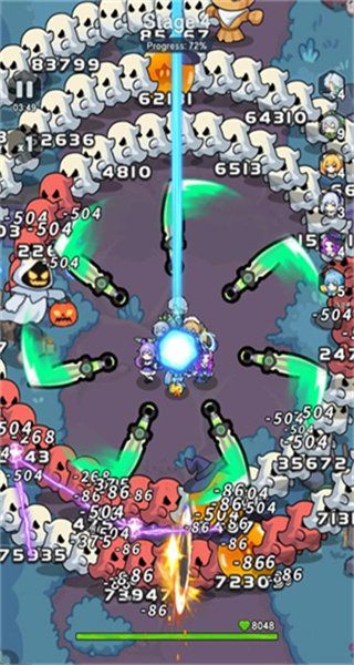 击退敌人波次后可从随机技能中选择强化,涵盖攻击、辅助、控制等不同类型,自由组合技能打造独特战斗流派,让每局游玩都有新体验。
