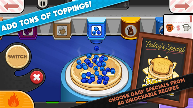 3、多维度店铺装饰系统:除设备升级外,支持自定义店铺装修风格,从墙面贴纸、餐桌样式到门口招牌,均可通过金币解锁更换,打造独具特色的煎饼店形象,吸引更多顾客进店。