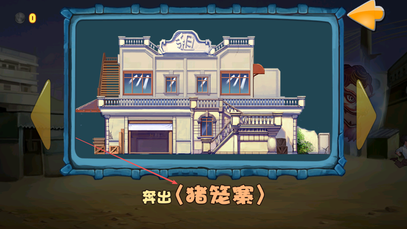 1、游戏开始界面,点击奔出猪笼寨字样处进入游戏关卡。