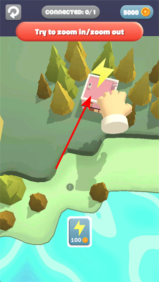 1、游戏中可通过缩放操作查看场景,点击带有闪电标识的建筑,这是开启电力连接任务关键操作。