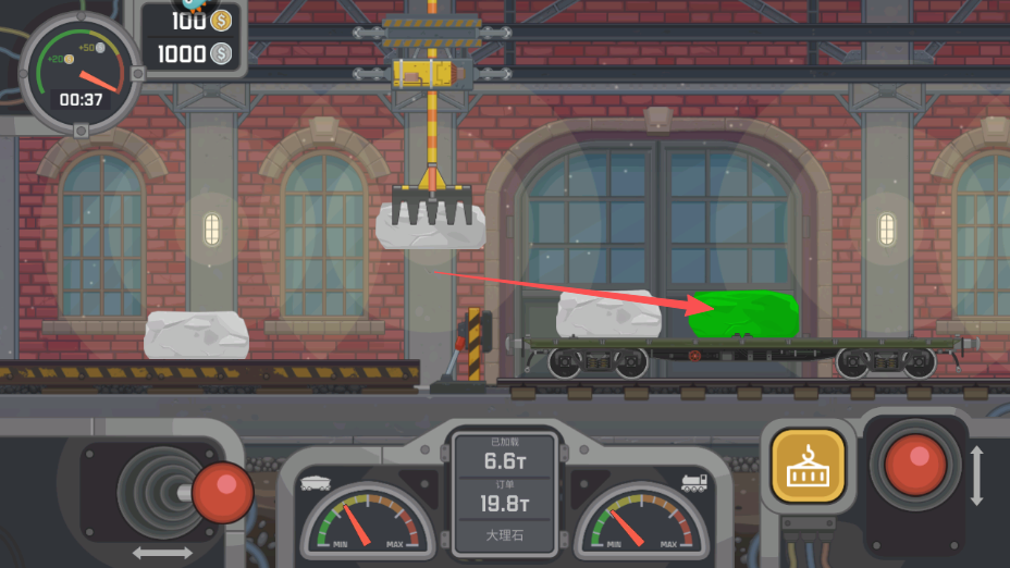 2、观察下方仪表盘中间的已加载和订单重量信息,明确任务目标,如运输大理石。