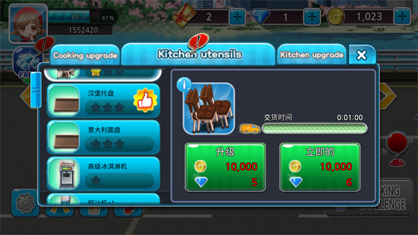 4、个性化厨房升级体系,通过修改版解锁的资源可自由强化烤炉、汤锅等设施,提升烹饪速度与容量,从容应对海量订单。