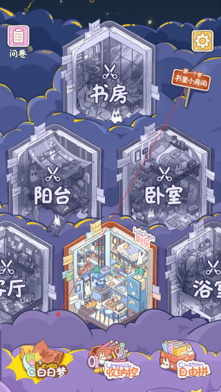4、完成单个房间布置后,返回主界面,选择像书里小房间等其他区域,重复操作打造梦想屋或者体验更多内容。