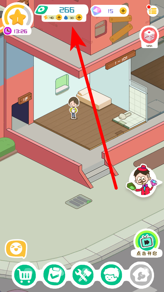 4、注意界面顶部的货币数值变化,这些货币可用于房屋的家具升级、新家具购买等各项后续操作。