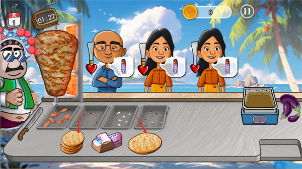 3、需要的食材将会变得更多,难度也会上升,非常挑战玩家的手速。