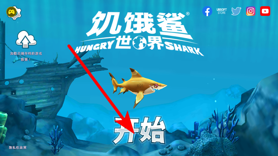 1、新手玩家体验游戏攻略,首先点击开始,进入海洋场景,开启鲨鱼的生存觅食之旅,准备在海洋中展开探索与捕食。