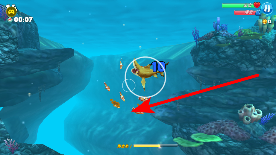 1、基本生存机制:控制鲨鱼游动捕食维持生命值,不断吞噬小型鱼类补充饥饿度,随着吞噬数量的增加,鲨鱼会逐渐成长并获得更强的捕食能力。