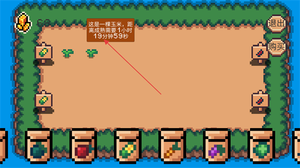4、种植玉米后,查看其显示的成熟剩余时间,等待作物成熟,以便后续进行收获操作。