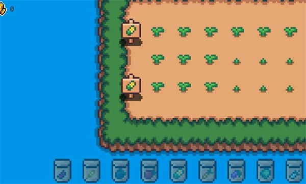 1、点击像素休闲农场界面中的开始按钮,进入游戏的农场种植界面,开启农场经营的相关流程。