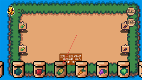 3、选定底部种子栏里的玉米种子,了解其种植需6宝石及对应时长,确认条件后准备进行种植。