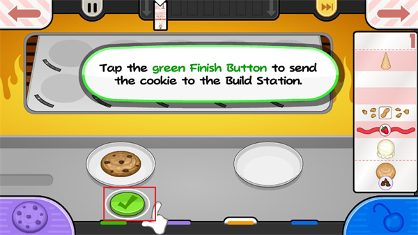 6、当饼干烘烤完毕后,饼干的旁边将会显示出绿色的光条,点击即可;
